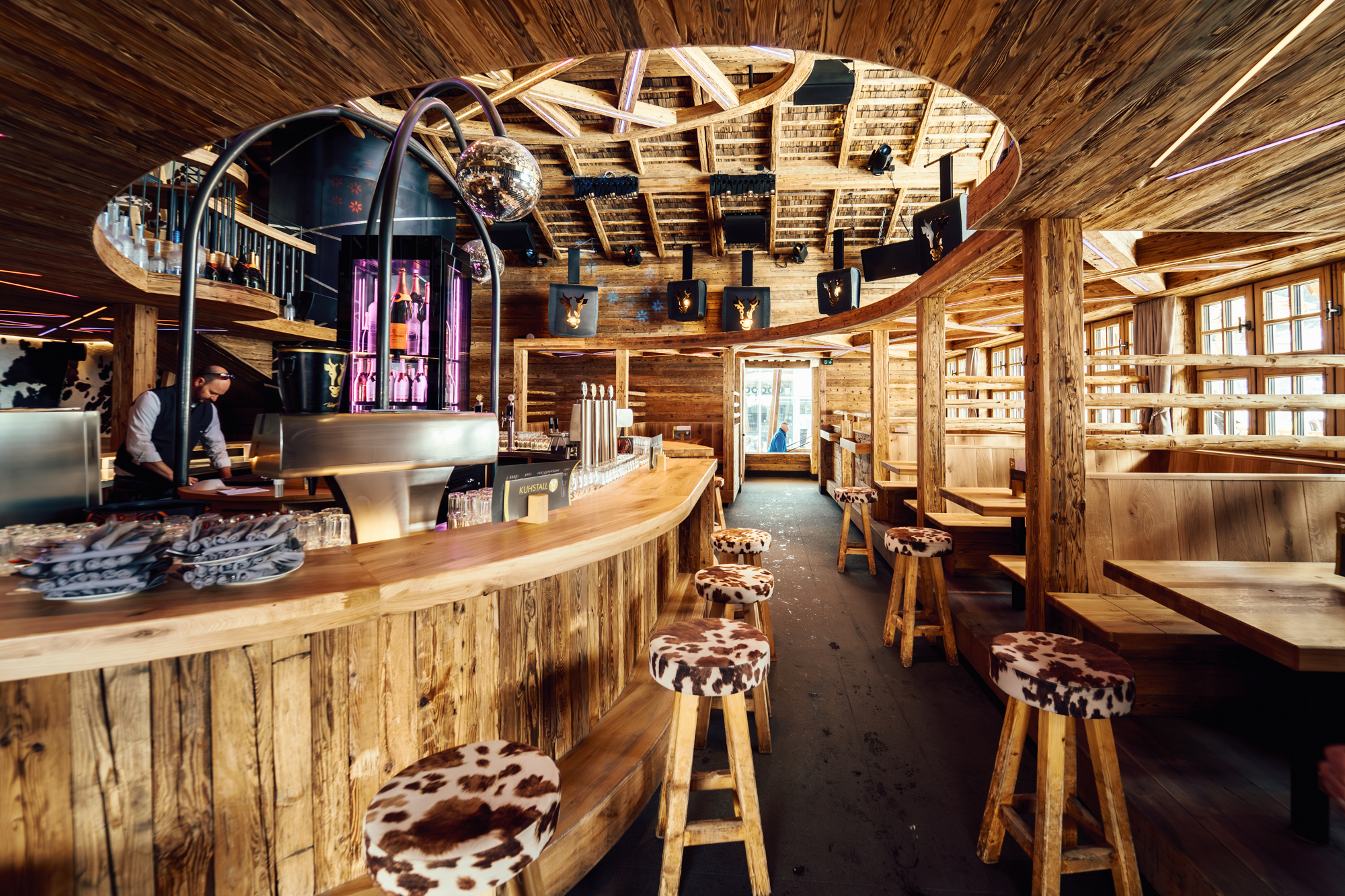 As part of the complete renovation of the well-known Après-Ski venue “Kuhstall,” two new bar facilities were implemented according to the client’s individual wishes by the gastro total branch in Radstadt. Due to the special architectural requirements created by architect Kaiser Rudolf, close collaboration with the gastro total manufacturing team was necessary to achieve an optimal result. We would like to thank Christoph Steinbacher, the owner and operator of the new gastronomy, for his trust and wish him much success with the unique concept.