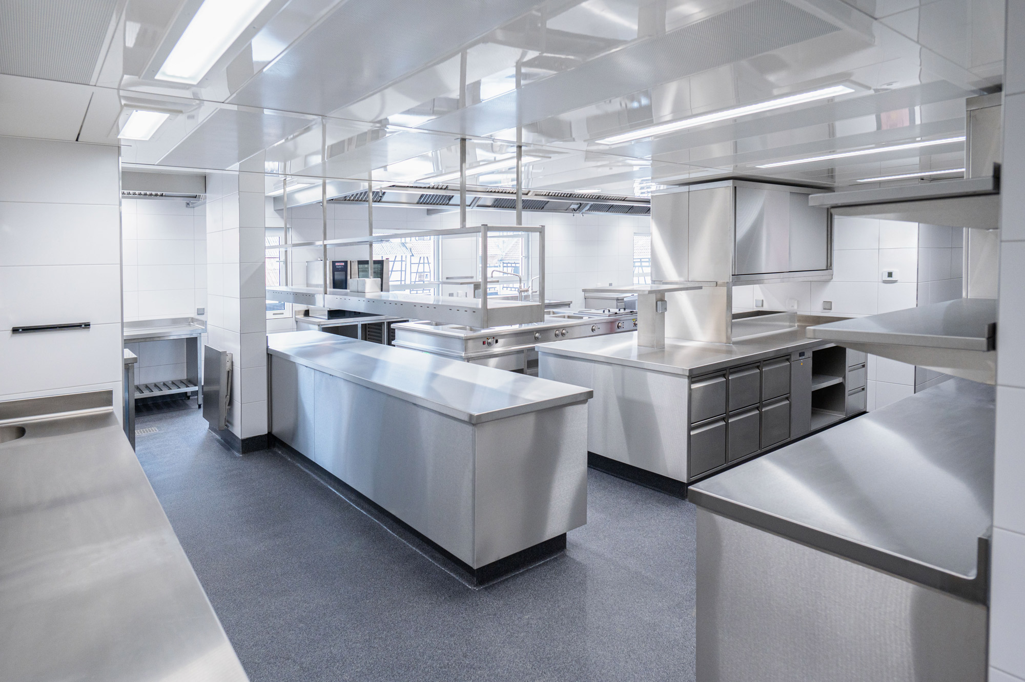 Für das dazugehörende Restaurant „Neunzehn“ haben wir 2021 mit den ersten Planungen begonnen und bis 2023 die Arbeiten an der neuen Küche fertig gestellt. Der Umbau inkludierte die Gewerke Lüftungstechnik, Kühlzellen und Bodenbeschichtung.