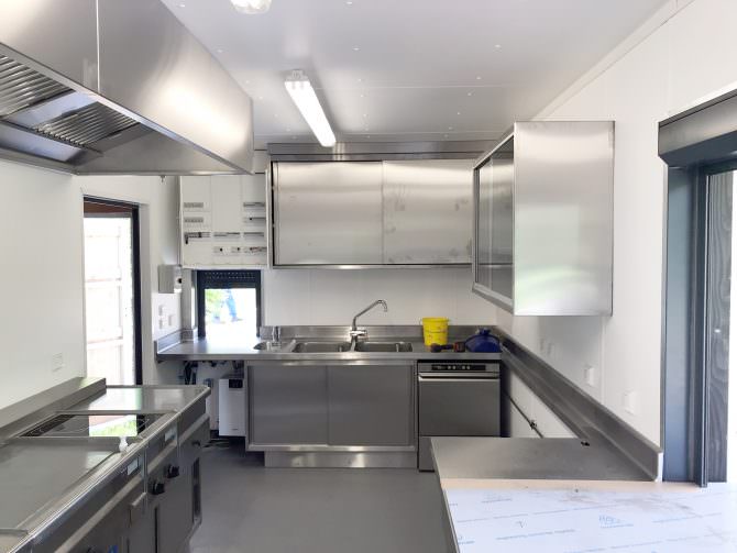 Im Herbst 2017 wurden wir von den Stadtwerken Heilbronn mit der Planung eines Imbisscontainers für das Freibad Gesundbrunnen beauftragt. Ziel war es, dass der Imbiss zur Freibadsaison in Betrieb geht. Auf kleinstem Raum (ca. 18m²) wurde eine Kochzeile mit ausreichender Kühlung, eine Essens- und Getränkeausgabe und eine Spülzeile montiert. Zum Leistungsumfang gehörten auch die Beschaffung des Containers, die Lüftungstechnik, die Kühlzellen mit Kältetechnik und die kompletten Elektro- und Sanitärarbeiten.