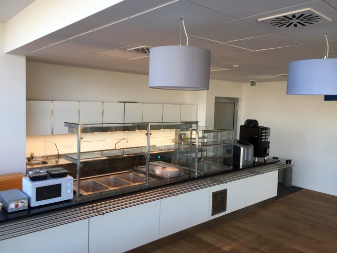 Von der Firma Witzenmann wurden wir mit der Planung des Betriebsrestaurants ihres neuen Gebäudes beauftrag. In der Ausgabe wurden Warmtheken und Kaltvitrinen auf kleinem Raum optimal konzipiert. Die Spültechnik wurde im Rückbereich integriert.